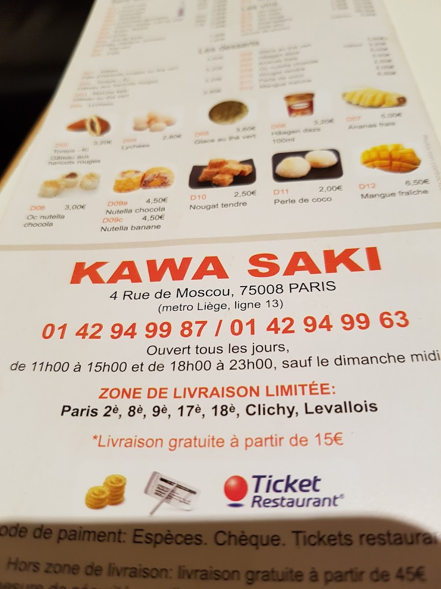 Welcome to Kawasaki Sushi, a hidden gem nestled at 4 Rue de Moscou, Paris. This cozy family-run restaurant offers a delightful array of sushi that captivates the palate. With an emphasis on freshness, customers rave about the high-quality, varied options, including their glistening eel sushi. Each dish is crafted with care, ensuring vibrant flavors that don't break the bank.